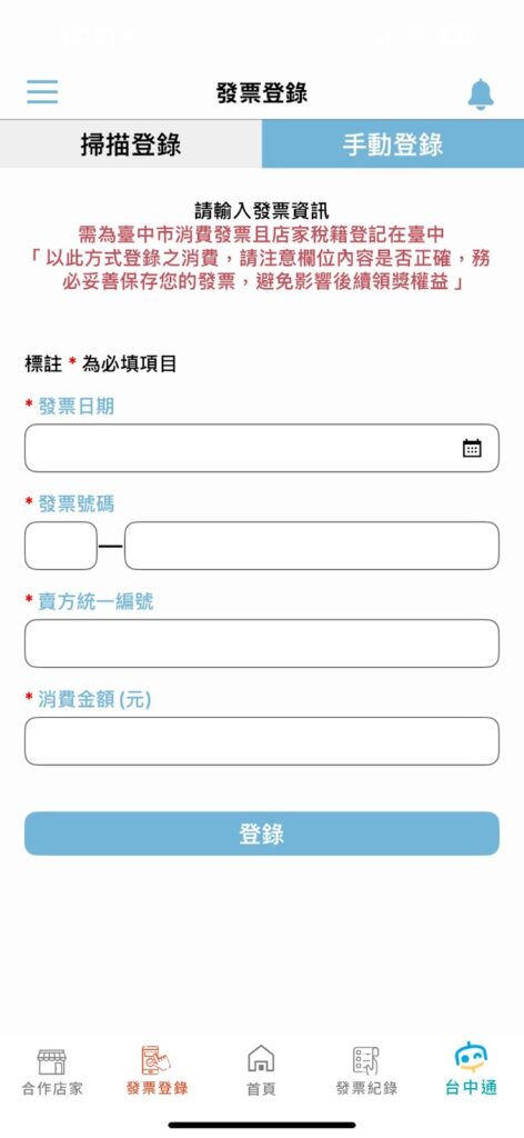 想要獲得抽獎資格,除了消費金額達到之外,還要登錄你的消費發票或收據,以下分步驟說明如何在台中通 App 操作。