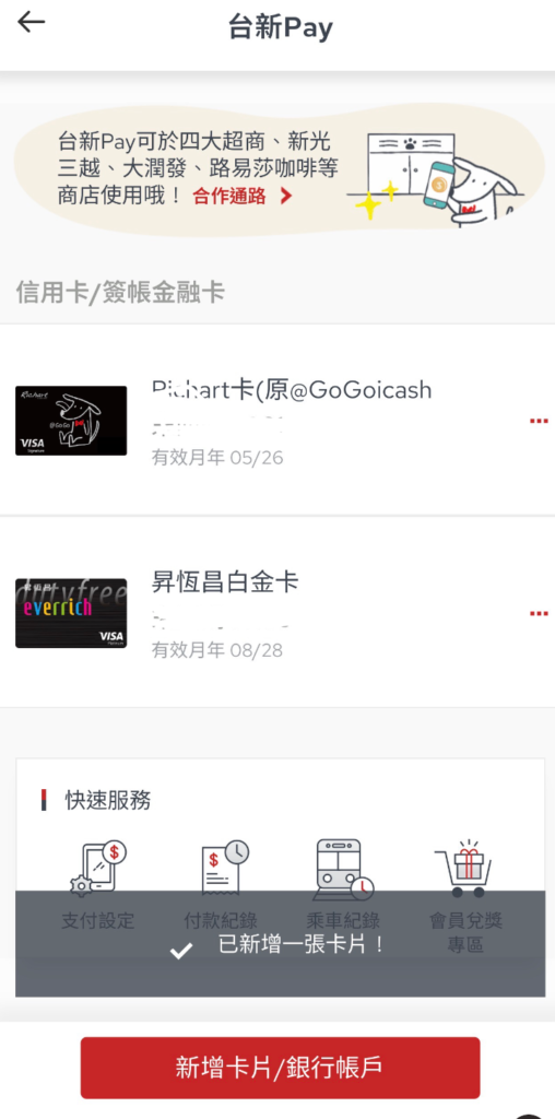 要綁台新 Pay 首選當然是自家的「台新 Richart 卡」,切換到 Pay 著刷享 3.8% 很好用。