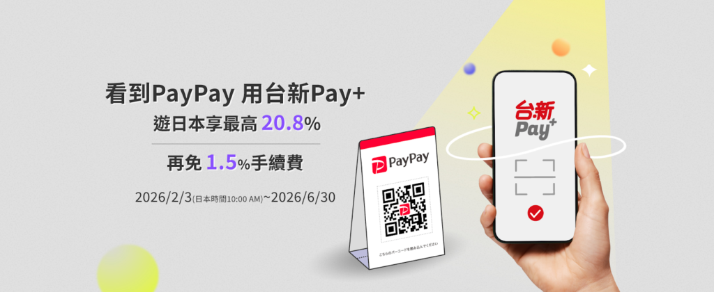 整理目前台新 Pay+ 在海外消費的主要優惠如下(活動期間:至 2026/6/30):