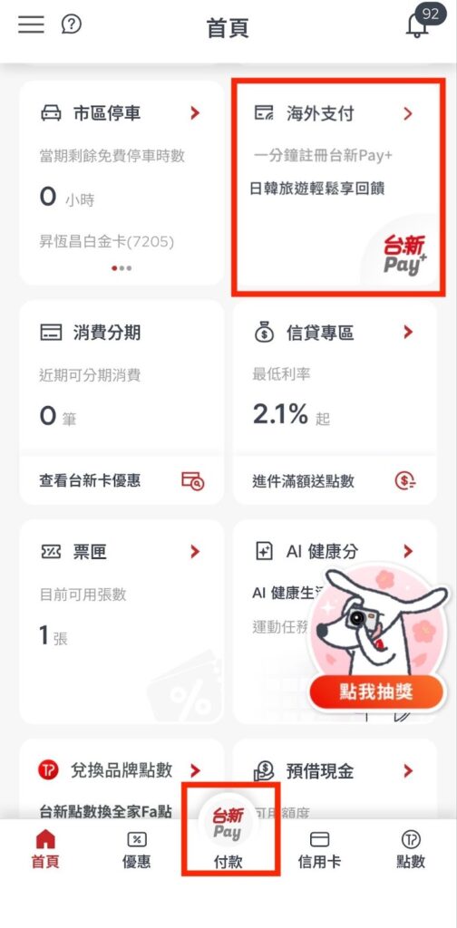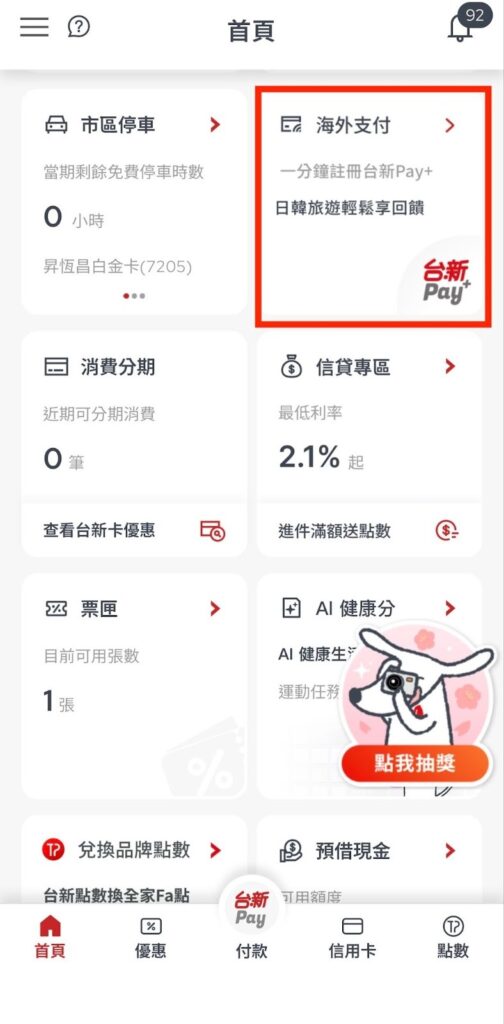 1. 下載 Richart Life App 並登入,首頁打開選「台新 Pay+ 海外支付」