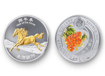 2026年為農曆「丙午馬年」,台灣銀行推出的「馬年彩色鍍金精鑄銀幣」,由中央造幣廠設計鑄造,是生肖彩色鍍金系列的第七款。幣面以「一馬當先」為主題,描繪一匹昂首奔馳的駿馬,馬蹄下襯以白色幸運草,寓意「馬到成功、福氣綿延」。背面則刻有「荔枝」圖樣,象徵果實累累、豐收圓滿,寓意新的一年事業興旺、財運豐盈。
