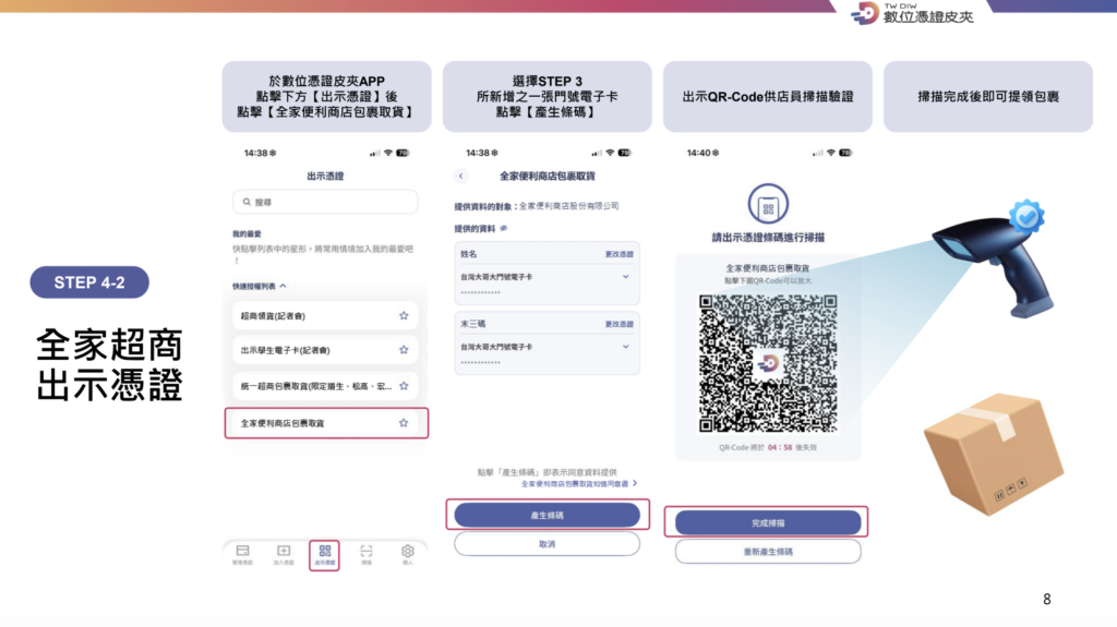 如果你常網購、店到店取貨,最麻煩的通常不是排隊,而是「臨櫃要驗證身分」:忘記帶證件、或不想在櫃台反覆出示一整張證件個資。數位發展部在「數位憑證皮夾」試營運情境裡,把超商領貨列為與民眾生活最緊密的落地應用之一:用手機出示憑證的 QR Code,就能完成包裹取貨驗證,把流程做得更快、也更符合「該給的才給」的隱私理念。
