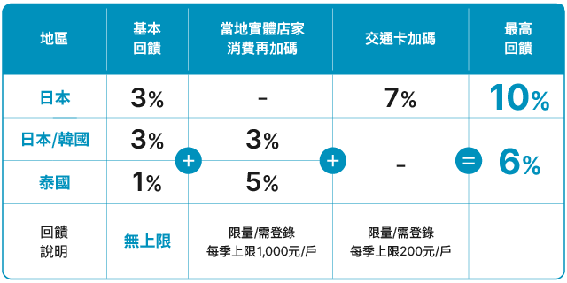 最高 6% | 600 元(一季) | 一般消費 1% 回饋無上限,登錄活動加碼 5% 回饋。 |