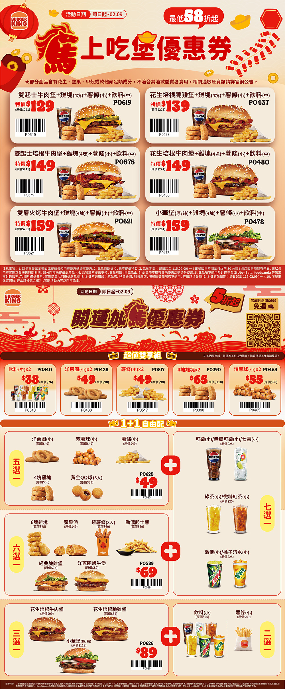 | P0626 | A 三選一:花生培根牛肉堡/花生培根脆雞堡/小華堡(原/辣) |