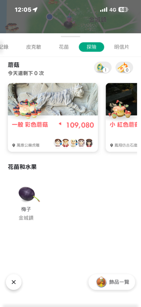 探測器每天都會免費重置一次使用次數,當你在某些特定的地理位置(例如咖啡廳、美術館、機場、電影院或火車站)時,點開探測器可以幫助你找出花苗、精華等。