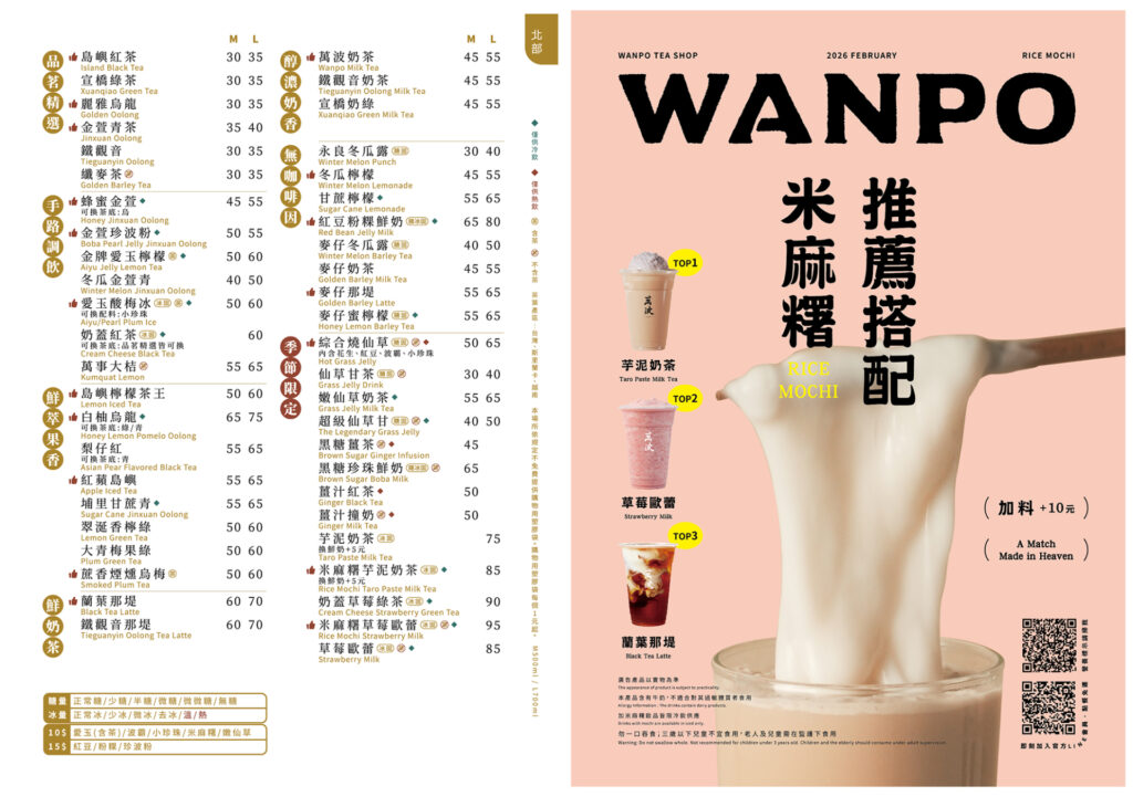 編按:萬波在社群平台宣布 10 月起將更換新菜單,奶類相關商品售價將進行微幅調整。