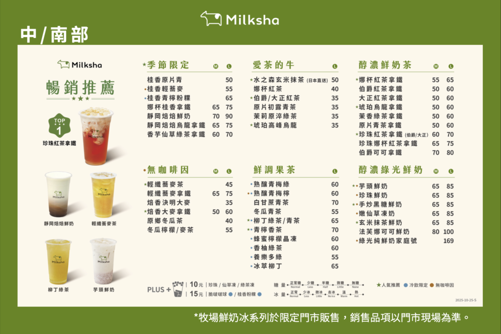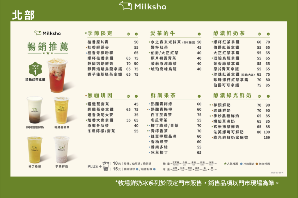 *以上表格以北部.一般門市菜單為主,整理時間:2025/11/16。下方有中/南部菜單圖片