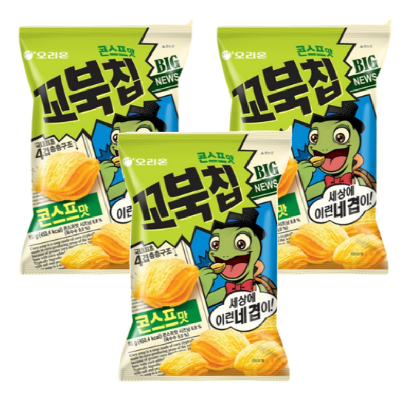 「好麗友烏龜玉米脆片」以四層酥脆造型聞名,吃一個就像一口氣吃了四個,每一口都能感受到厚實立體、多層次的咔滋口感。外型模仿烏龜殼般的曲線設計,讓脆片更能包裹調味粉,吃起來帶著玉米濃湯的甜味。比起傳統洋芋片,更厚實耐嚼,適合邊追劇邊大口咬下。這款烏龜餅乾不但在韓國本地超市是常年熱銷商品,也深受海外消費者喜愛,絕對是當之無愧的「必買韓國零食」之一。