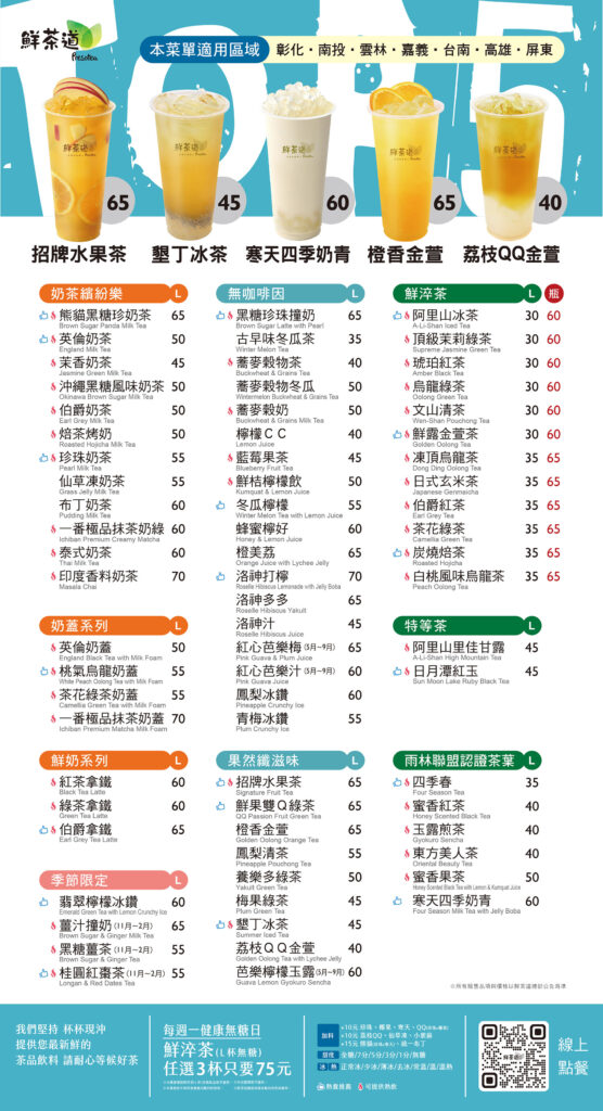 鮮茶道北部菜單