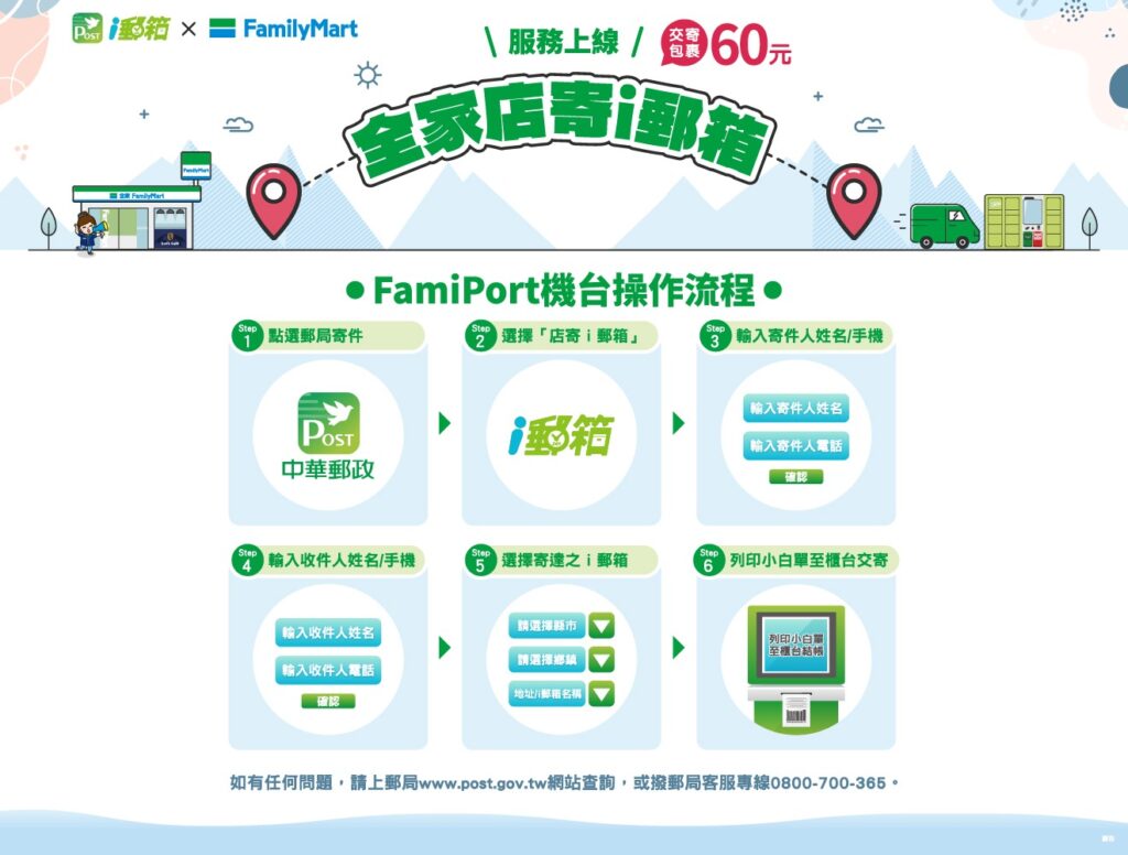 - 於全家便利商店 FamiPort 寄件至 i 郵箱取件。