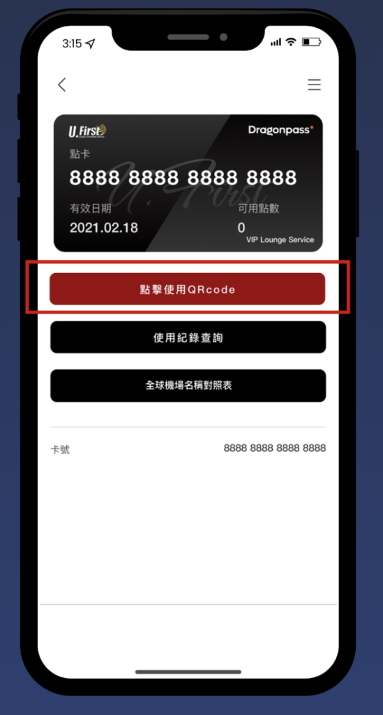 4.將 QRcode 及護照出示給服務人員,即可進入貴賓室。
